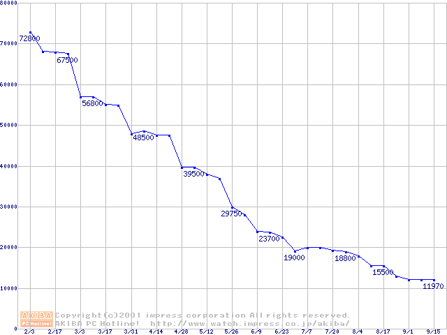 メモリ主要製品(最安値1万円以上)の最安値推移