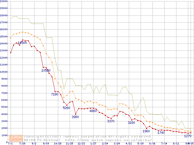 メモリ主要製品の最安値推移