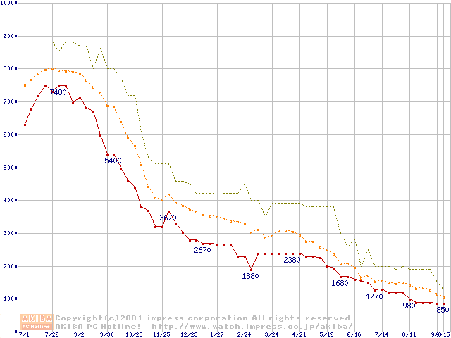 PC133 SDRAM DIMM CasLatency=3の最安値推移
