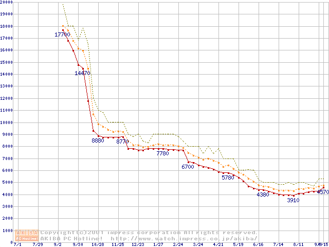 Socket A (PGA,FSB 200MHz,L2 64KB)の最安値推移