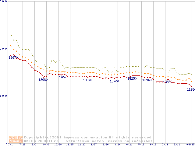 Deskstar 75GXP (7,200rpm Ultra ATA/100 2MB)の最安値推移