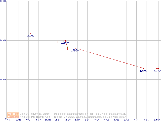 Socket 370 (FC-PGA,FSB 133MHz,L2 256KB)の最安値推移