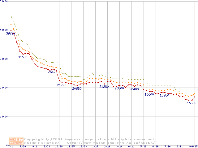 Pentium III 800EBMHz FC-PGA リテールパッケージの価格推移
