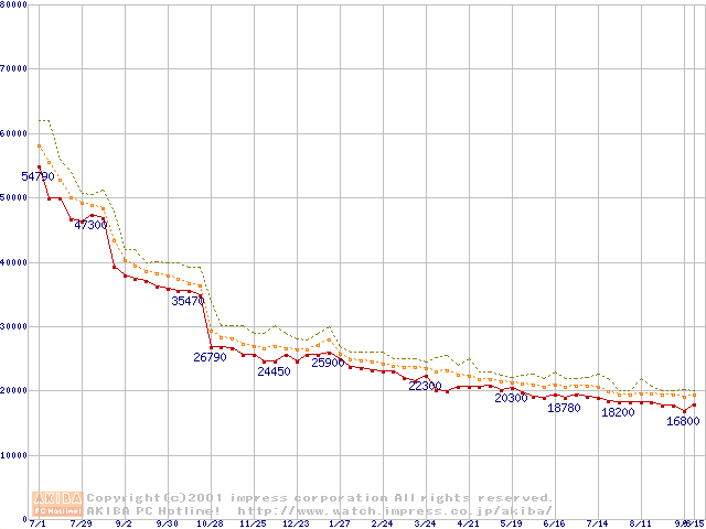 Pentium III 850MHz FC-PGA リテールパッケージの価格推移