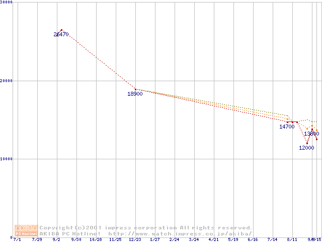 Slot 1 (SECC2,FSB 100MHz,L2 256KB)の最安値推移