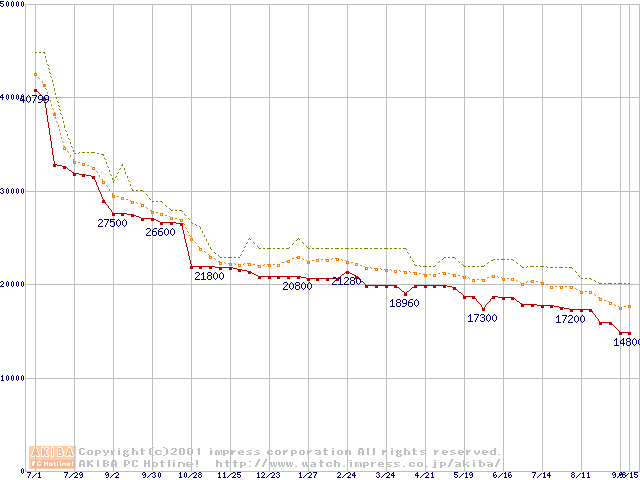 Pentium III 800EBMHz SECC2 リテールパッケージの価格推移