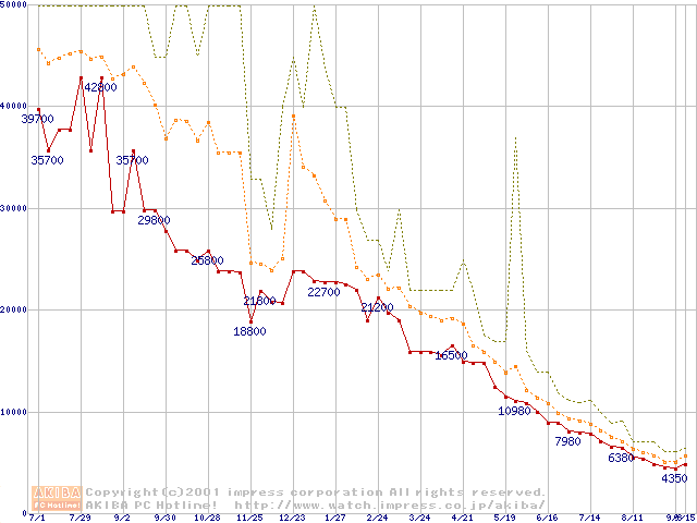 PC800 DRDRAM RIMMの最安値推移