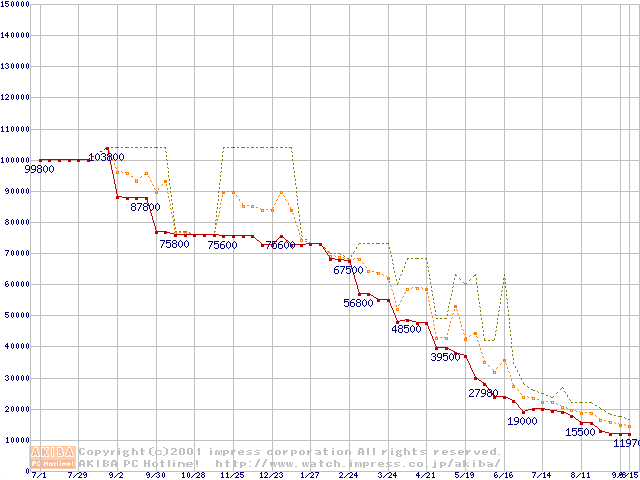 メモリ主要製品の最安値推移