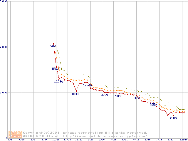 Celeron 733MHz FC-PGA リテールパッケージの価格推移