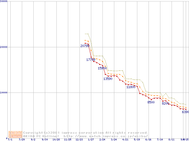 Celeron 800MHz FC-PGA リテールパッケージの価格推移