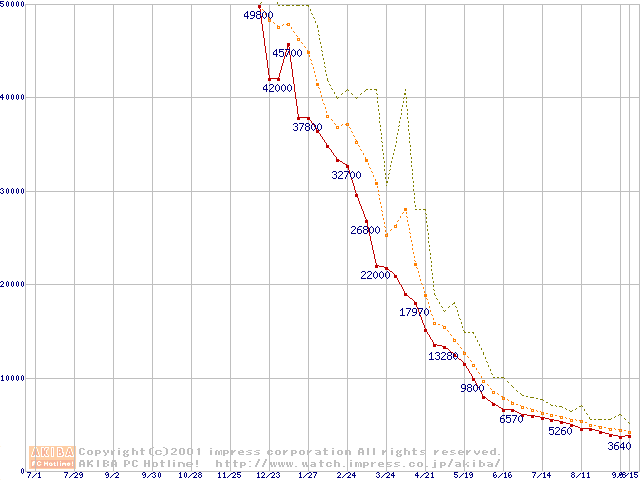 メモリ主要製品の最安値推移