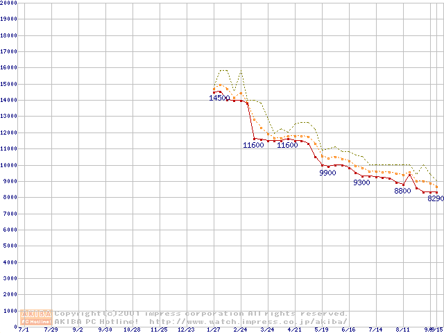 Socket A (PGA,FSB 200MHz,L2 64KB)の最安値推移