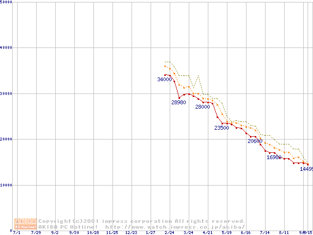 Athlon 1.2GHz(FSB200) (Thunderbird) リテールパッケージの価格推移