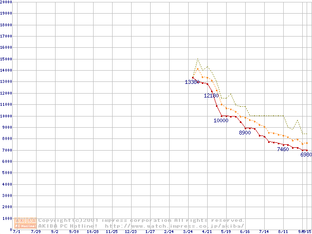 Socket A (PGA,FSB 200MHz,L2 64KB)の最安値推移