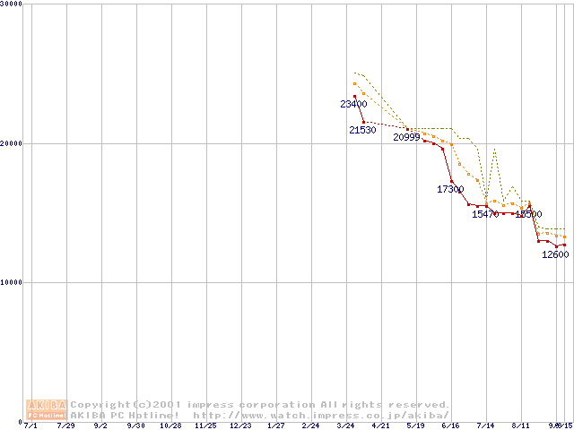 Athlon 1GHz(FSB266) (Thunderbird) リテールパッケージの価格推移