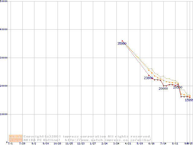 Athlon 1.33GHz(FSB266) (Thunderbird) リテールパッケージの価格推移
