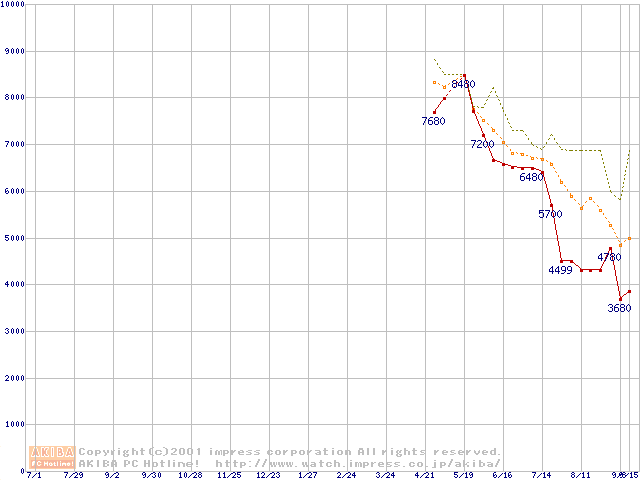 VIA C3 700AMHz リテールパッケージの価格推移