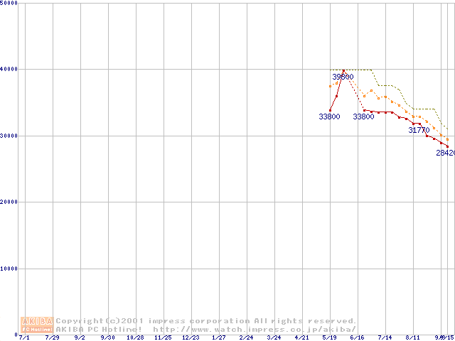 DiamondMax 536DX (5,400rpm Ultra ATA/100 33.3GB/Platter)の最安値推移