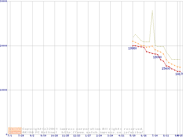 DiamondMax 536DX (5,400rpm Ultra ATA/100 33.3GB/Platter)の最安値推移