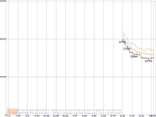 HDD主要製品(最安値1万円~1万5千円未満)の最安値推移