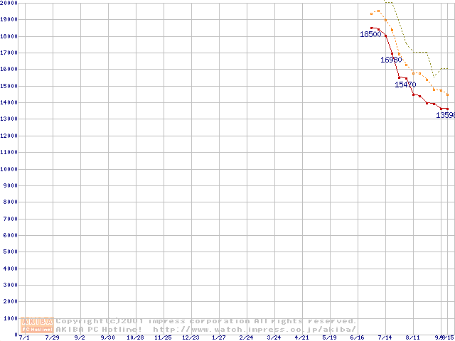 DiamondMax D540X (5,400rpm Ultra ATA/100 40GB/Platter)の最安値推移