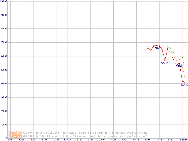 Socket 370 (PGA,FSB 100MHz,L2 64KB)の最安値推移