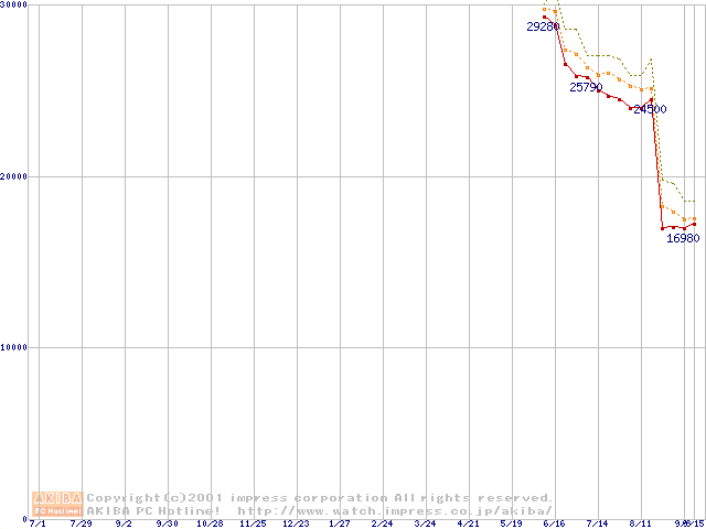 Socket A (Thunderbird,PGA,FSB 200MHz,L2 256KB)の最安値推移