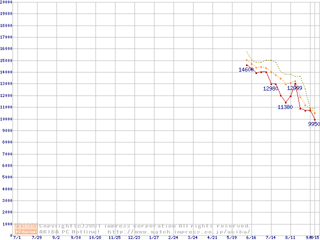 Socket A (PGA,FSB 200MHz,L2 64KB)の最安値推移