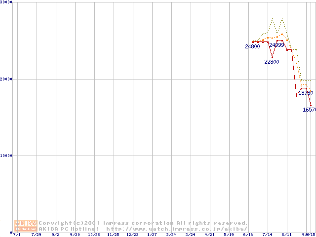Pentium 4 1.4GHz(423pin)リテールパッケージ(RIMMなし)の価格推移