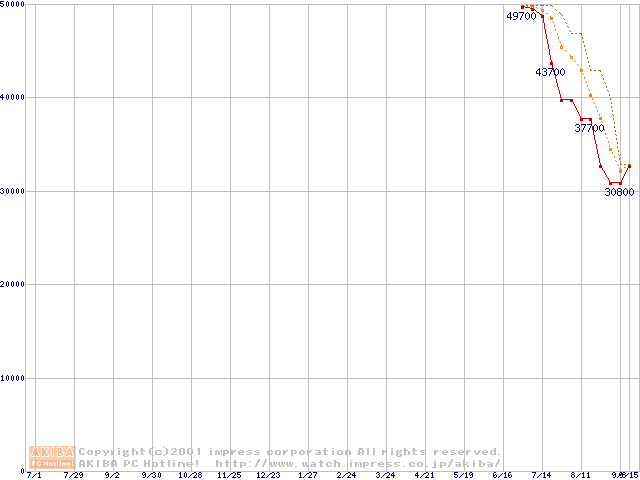 Socket 370 (FC-PGA2,FSB 133MHz,L2 512KB)の最安値推移