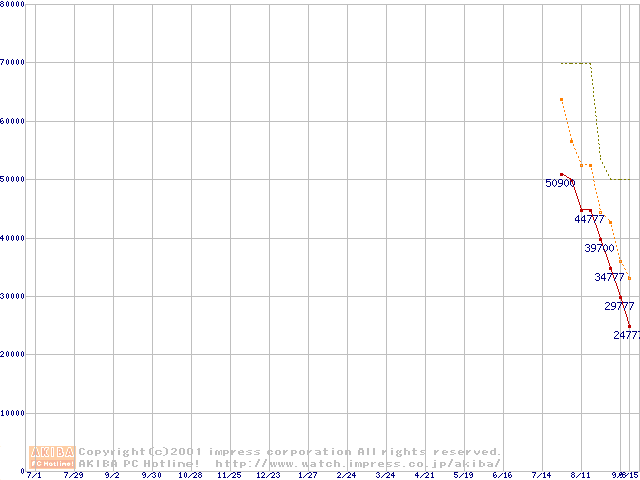 PC133 SDRAM DIMM CasLatency=3 ECC対応 Registeredタイプの最安値推移