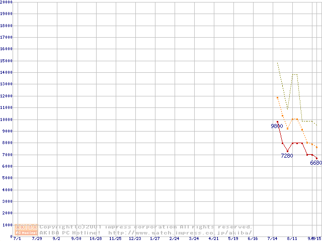 PC133 SDRAM DIMM CasLatency=3 ECC対応 Registeredタイプの最安値推移