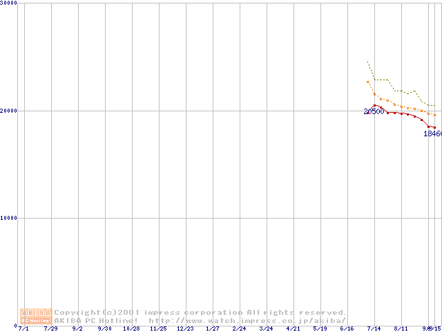 HDD主要製品(最安値1万5千円~2万円未満)の最安値推移