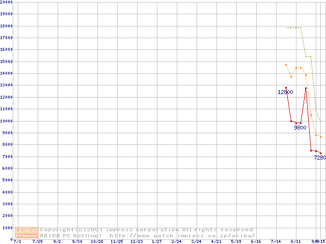 メモリ主要製品の最安値推移