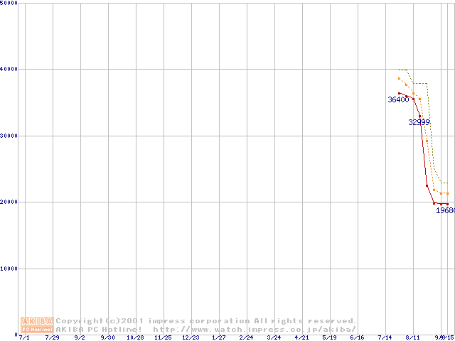 Pentium 4 1.6GHz(423pin)リテールパッケージ(RIMMなし)の価格推移