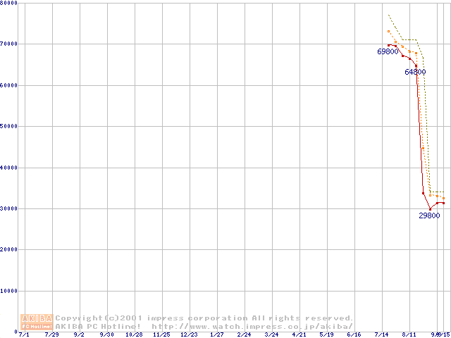 Pentium 4 1.8GHz(423pin)リテールパッケージ(RIMMなし)の価格推移