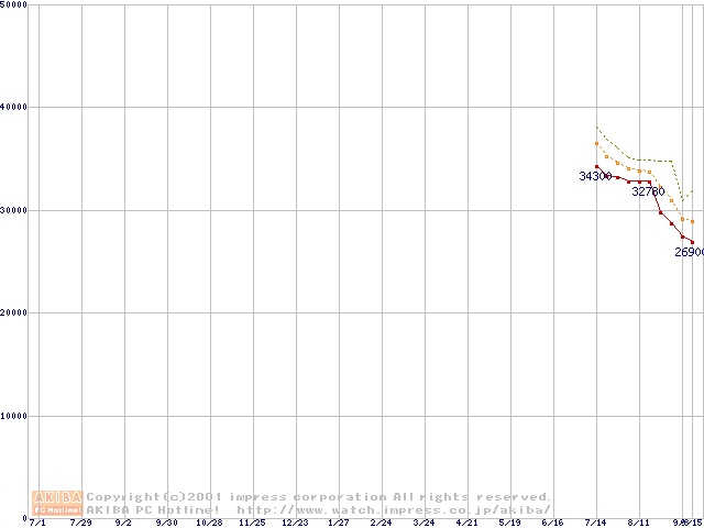 Pentium III 1.13AGHz FC-PGA2 リテールパッケージの価格推移