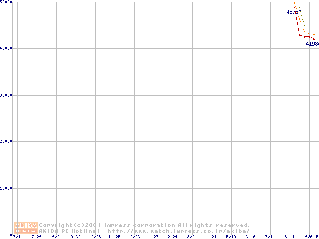 Socket 370 (FC-PGA2,FSB 133MHz,L2 512KB)の最安値推移