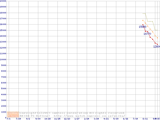HDD主要製品(最安値1万円~1万5千円未満)の最安値推移