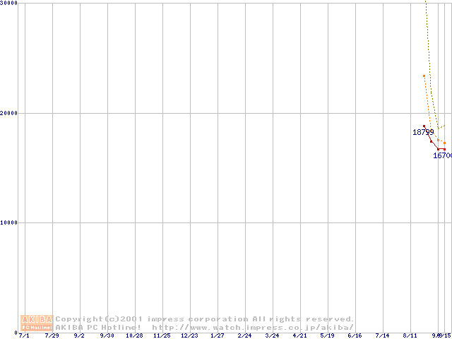 Pentium 4 1.5GHz(478pin)リテールパッケージの価格推移