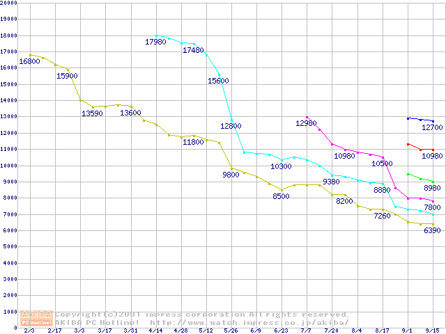 | [↓次グラフ]: | Socket 370 (FC-PGA,FSB 66MHz,L2 128KB)の最安値推移 |