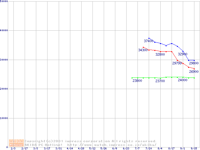 | [↑前グラフ]: | Socket 370 (FC-PGA2,FSB 133MHz,L2 512KB)の最安値推移 |