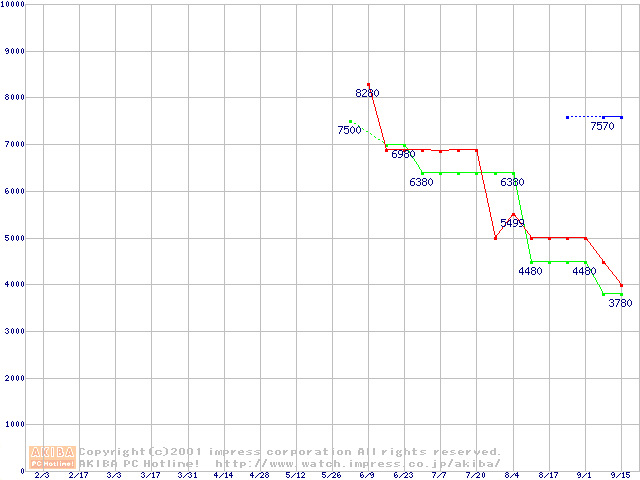 | [↓次グラフ]: | DiamondMax Plus 60 (7,200rpm Ultra ATA/100)の最安値推移 |