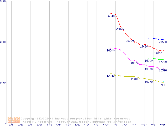 | [↑前グラフ]: | DiamondMax Plus 60 (7,200rpm Ultra ATA/100)の最安値推移 |