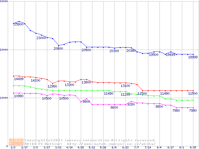 | [↑前グラフ]: | 531DX (5,400rpm Ultra ATA/100)の最安値推移 |