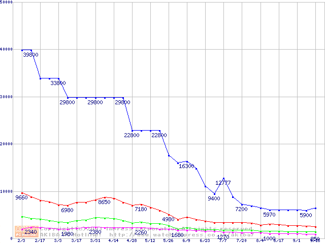| [↑前グラフ]: | PC150 SDRAM DIMMの最安値推移 |