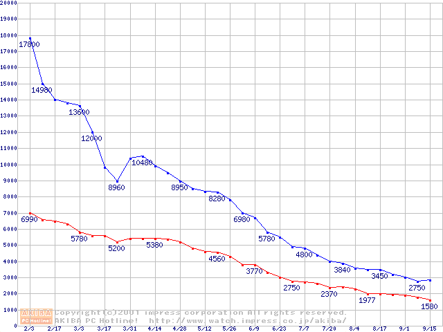 | [↓次グラフ]: | PC166 SDRAM DIMMの最安値推移 |