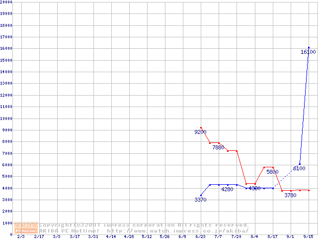 | [↑前グラフ]: | PC166 SDRAM DIMMの最安値推移 |