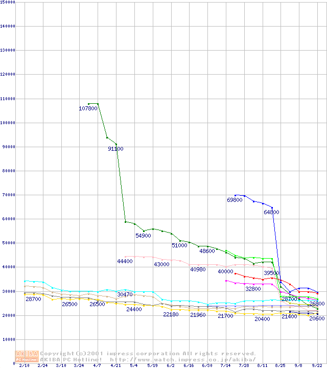 CPU主要製品(最安値2万円~3万円未満)の最安値推移