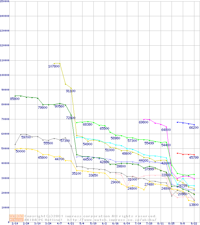 Socket 370・FSB 133MHzの最安値推移